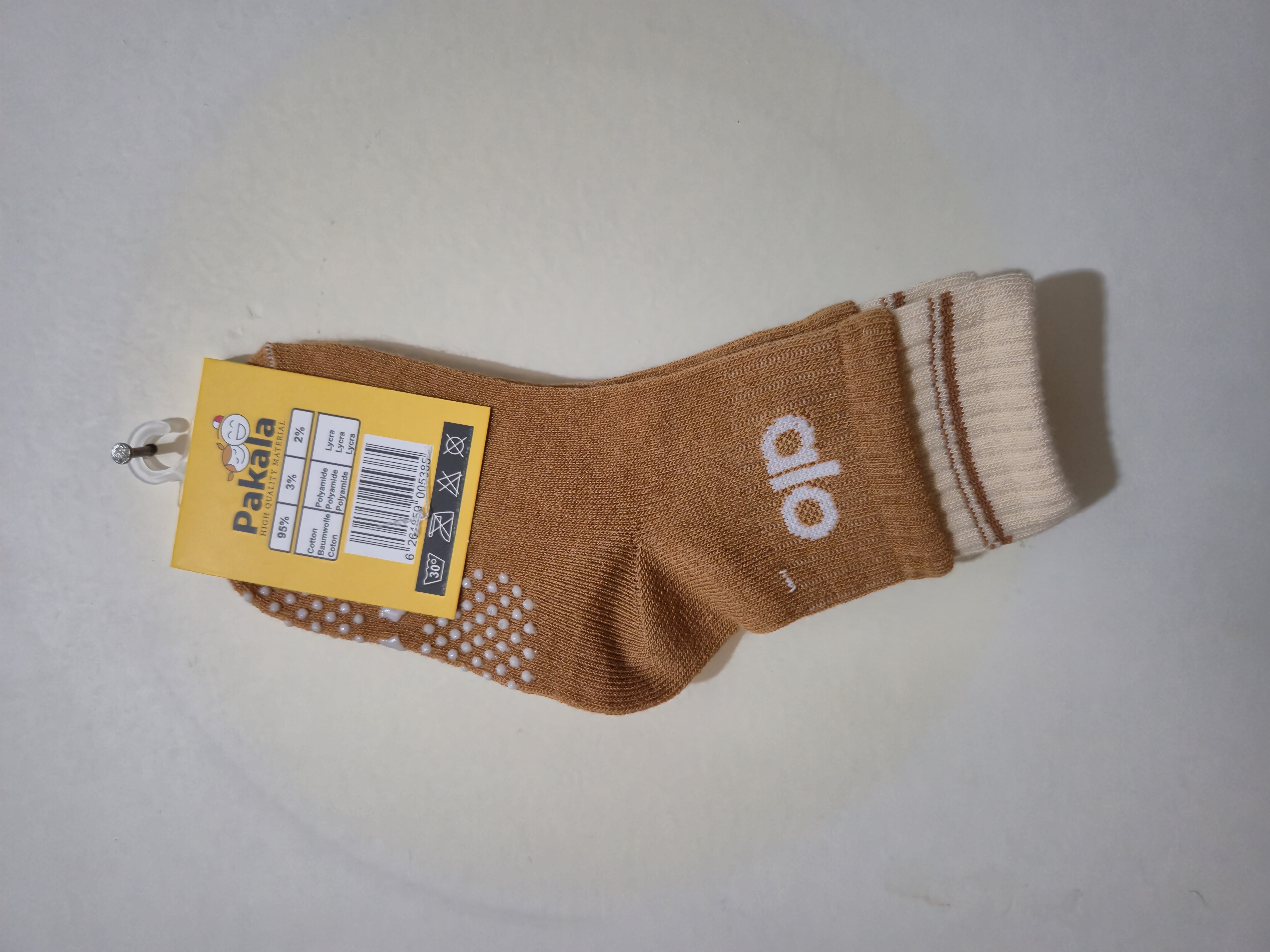 جوراب بچه گانه alo ترمز دار از لیز خوردن بچه حین راه رفتن یا دویدن تا حد زیادی جلوگیری میکند.