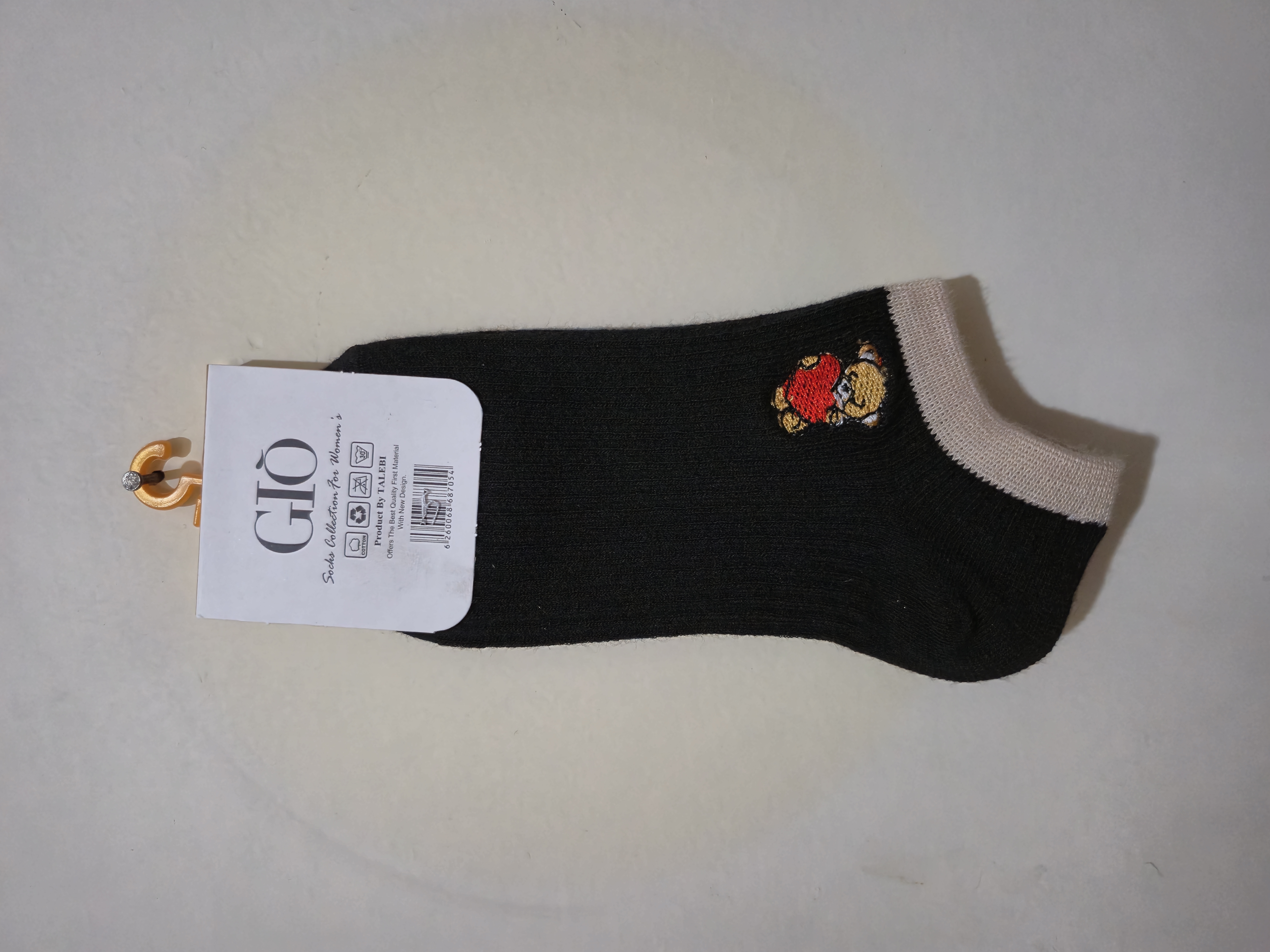 جوراب دخترانه گلدوزی شده مشکی قهوه‌ای